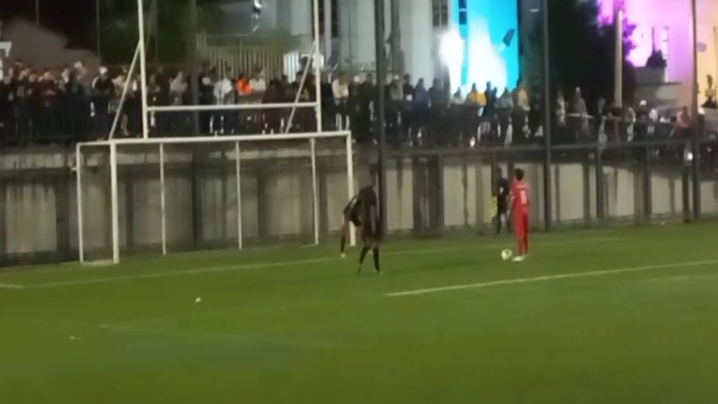 Gol marcado por Thomas Bustos mediante cobro desde el punto penal, que le otorga al Deportivo Rionegro, el paso a la final del Torneo Nacional Interclubes Sub17B-2023 Difutbol. Foto: Captura de pantalla Transmisión https://www.facebook.com/Deporte al Día