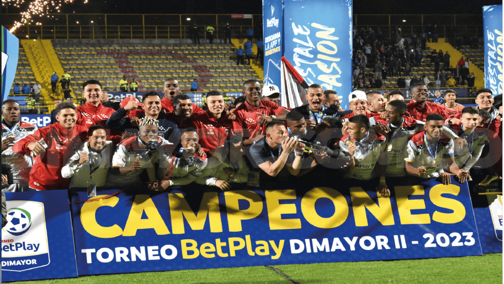 Fortaleza CEIF celebrando el título obtenido frente a Cúcuta Deportivo en la final vuelta del Torneo Betplay II-2023. Foto:https://dimayor.com.co/album/