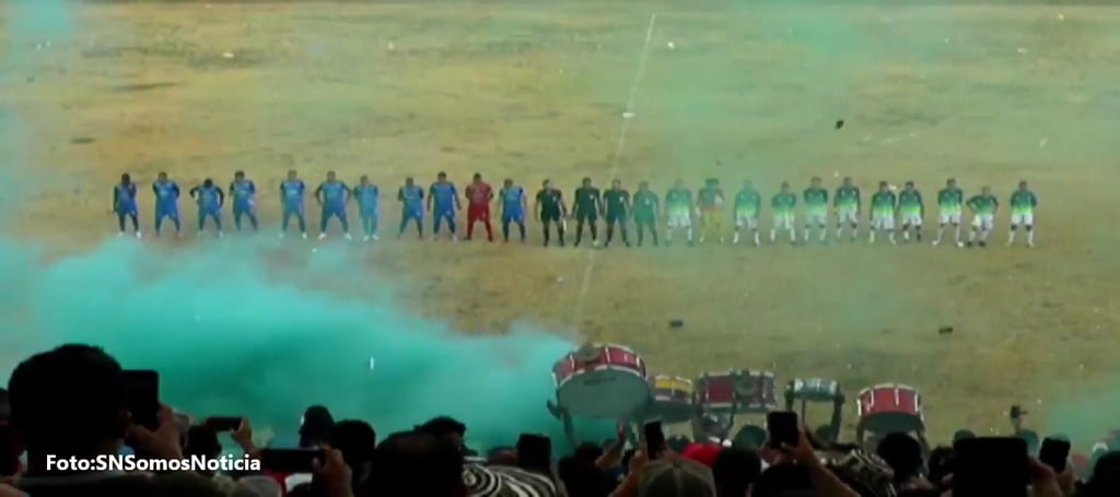 Formación de las plantillas del Real Bucaramanga y Once Caldas, en actos protocolarios en el partido de vuelta por la final del Torneo Sub20B-2021, Estadio Francisco Ramos Pereira de Aguachica . Foto: SN SomosNoticia