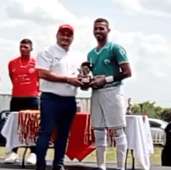 Figura de partido: Carlos Andrés Raga quien marcó dos de los 4 goles del triunfo en calidad de Local del CD Tiendas Margo's y le permite soñar con el título. Foto: www.facebook.com/AjMix2012